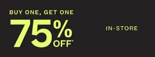 Shop in store and buy one, get one 75% off select items for a limited time.