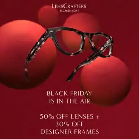 Shop Black Friday savings: 50% off lenses + 30% off designer frames at LensCrafters.