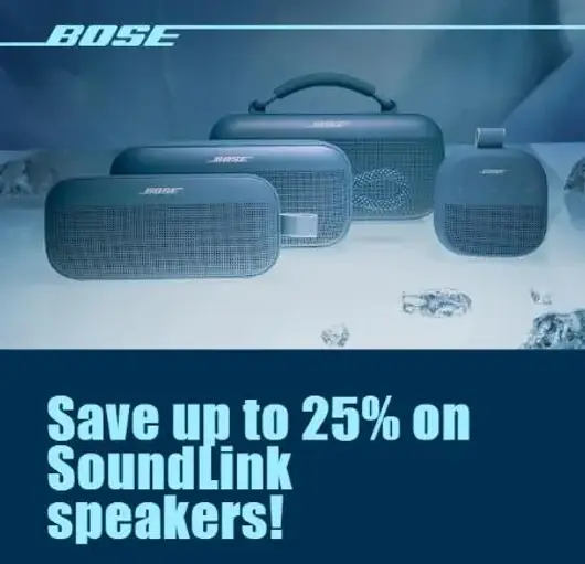 Deck the halls with bass and bangers! Shop in store and save up to 25% on SoundLink speakers.