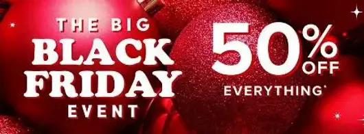 The Big Black Friday Event is here! Shop in store and get 50% off everything.
